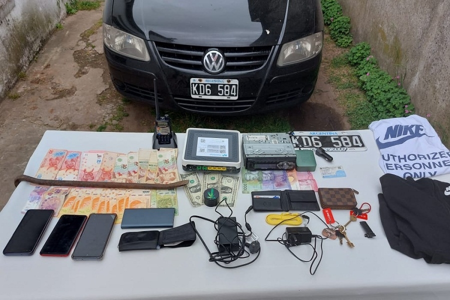 En primer lugar comprobaron que el dominio del coche estaba adulterado a los fines de despistar. Después, en la requisa realizada se secuestró el Gol, un inhibidor de señal con su cargador, tres teléfonos celulares, un stereo, cargadores de teléfonos y de computadoras, un módem de internet, una barreta, 8.000 pesos chilenos, 10 euros y 23.500 pesos de curso nacional.