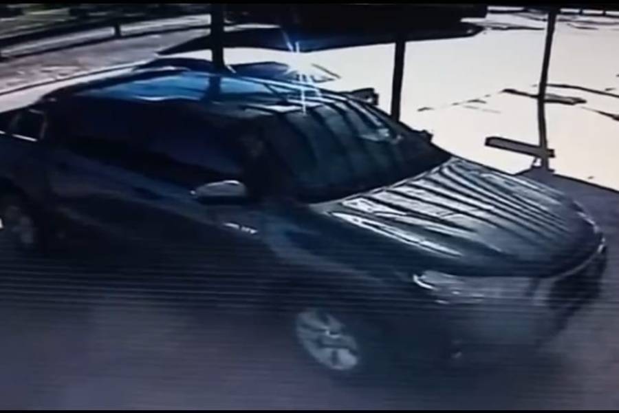 Chequeando las cámaras de seguridad observó que dos delincuentes a bordo de un coche gris estacionaron a la par, sobre la vereda, y se bajaron para intentar abrir la puerta delantera izquierda de la pickup.