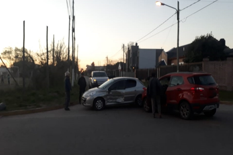 Alrededor de las 19 horas se produjo el primer siniestro vial entre un auto Peugeot 206 (JMT837) color gris y una camioneta Ford EcoSport naranja (PRO 819).