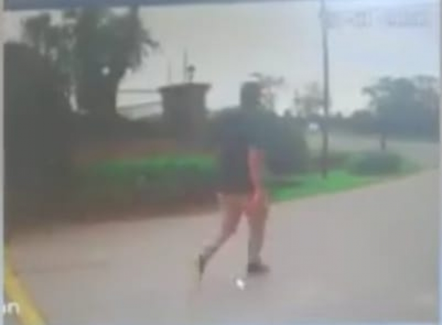 A diferencia de la indumentaria reconocida en la denuncia, parece verlo salir con remera negra, pantalon marrón claro y zapatillas oscuras.