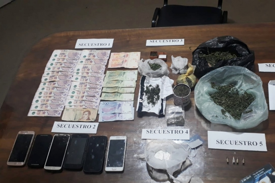 Si bien no encontraron el arma del ataque, al revisar la casa hallaron drogas listas para su comercialización. En total la policía incautó cuatro municiones punta hueca calibre 22, 6.800 pesos en efectivo, 35, 7 gramos de clorhidrato de cocaína, seis teléfonos celulares y 113 gramos de marihuana.
