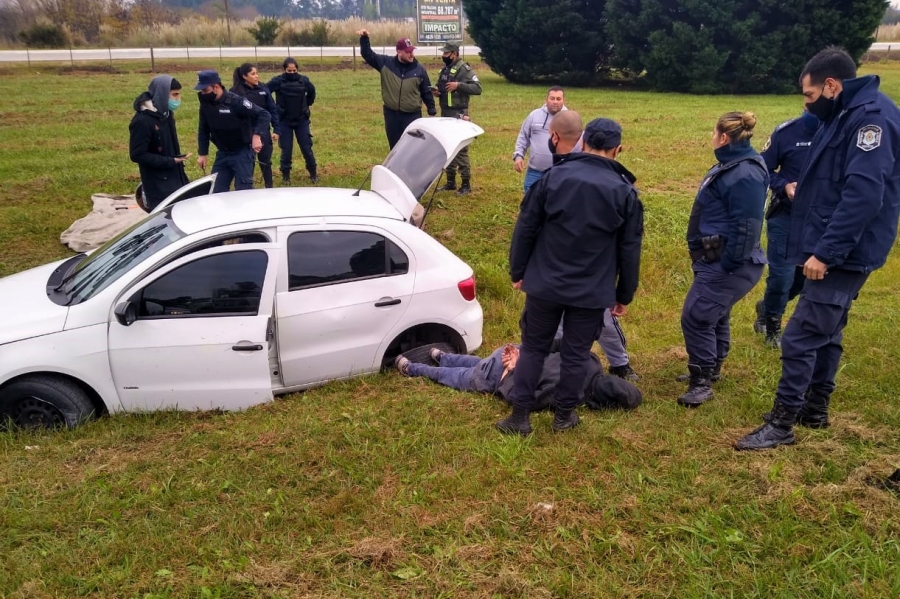 En tal sentido, se implementó un operativo cerrojo en el corredor de la Ruta 205, que localizó al vehículo fugado a la altura del kilómetro 64 de Ruta 205. Allí comenzó una persecución por la ruta nacional mencionada, que siguió por calles interiores de la localidad de Levene, y finalizó con la interceptación final y aprehensión de su conductor, en el km. 55 de la Autopista Ezeiza-Cañuelas, donde el Gol pierde la estabilidad y queda depositado en la banquina tras romper el eje trasero.