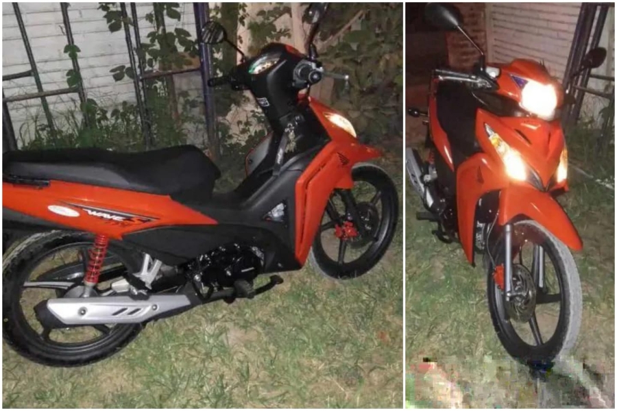 La moto, una Honda Wave roja de 110 centímetros cúbicos con patente A157NPA, estaba guardada en la galería de la casa, asegurada con el traba volante.