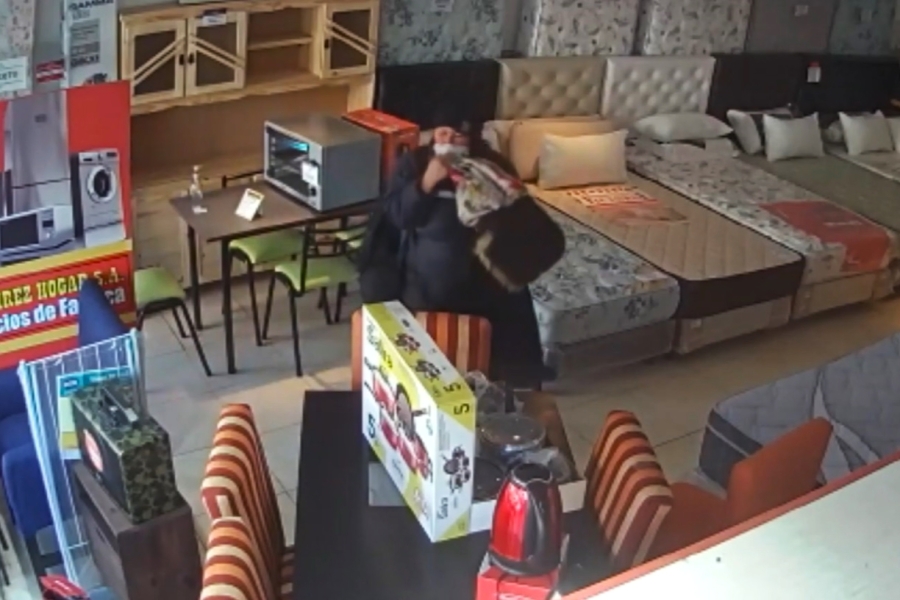 El circuito de seguridad interna de “Universo Sommier” filmó el hecho delictivo realizado por una mujer. Tal como marca la cinta, el hecho se registró el pasado 30 de mayo en el local de Avenida Libertad N°345.