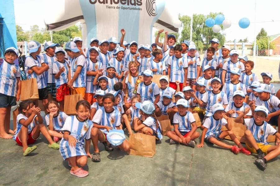 Además de compartir el momento, Fassi hizo entrega de gorras, remeras y toallones para los más de 200 niños y niñas que forman parte de la colonia.