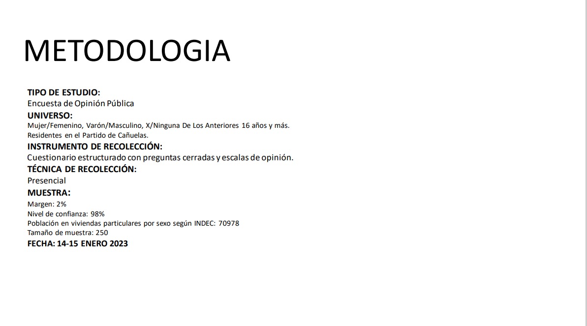 La muestra se realizó en 250 viviendas particulares de manera presencial, con preguntas cerradas y escalas de opinión, a mayores de 16 años.