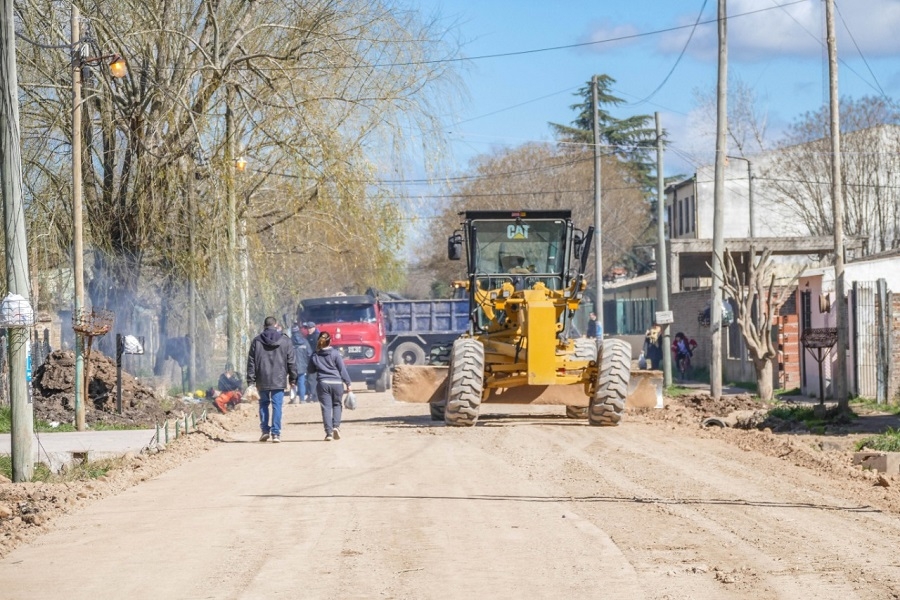 A su vez caminó por las calles Perú, Ayacucho, Gutenberg y Combate de Los Pozos, donde se están llevando a cabo maniobras de nivelación y consolidado con tosca, preparando la calzada para posteriormente colocar la capa de asfalto concluyente.