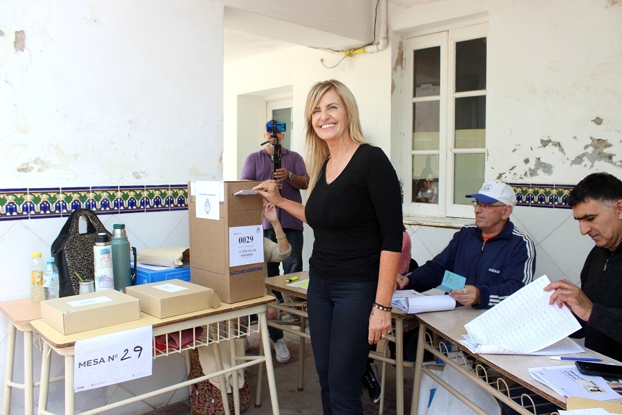La postulante a jefa comunal por el oficialismo brindó una rueda de prensa minutos después de sufragar en el edificio del Colegio Secundario Santa María.