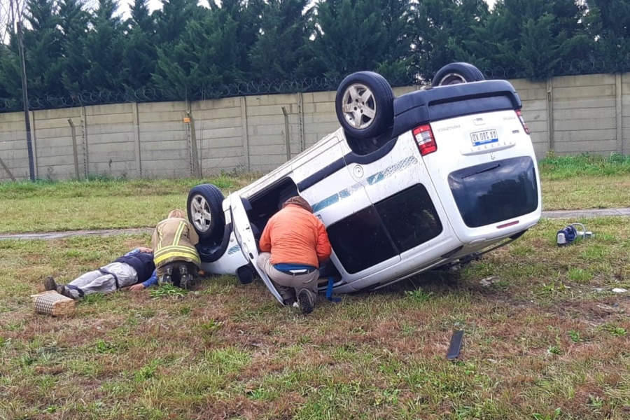 El hecho ocurrió este miércoles, pasadas las 9.40hs, cuando una camioneta Peugeot Partner en la que viajaban dos adultos mayores salió de la ruta y terminó volcando en el pasto.