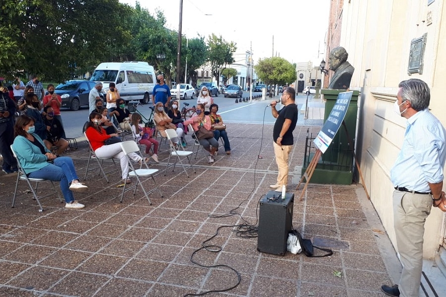El “salón” se montó en la puerta de la Escuela Primaria N°1 y por los micrófonos pasaron el jefe de la bancada de concejales, Carlos Álvarez, la edil Edith Vasallo, los consejeros escolares Verónica Iozzolino, Eva Corbalán y Marcelo Sabino. También tomaron la palabra la profesora Irene Iñiguez y el profesor Gastón Ávila.