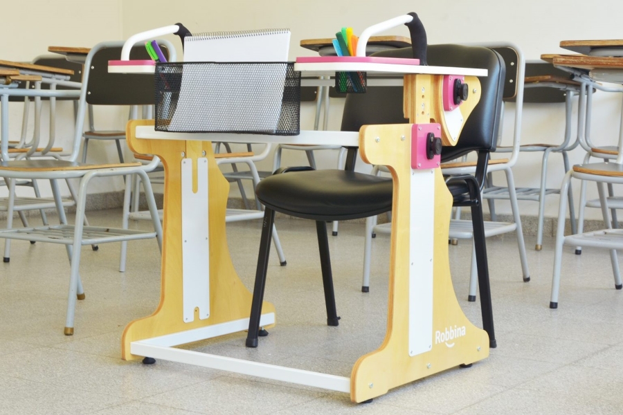 Esencialmente, para desarrollar las tareas de forma cómoda Ludmila precisaría un pupitre funcional con regulación en altura y en inclinación.
