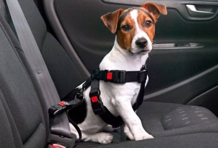 El cinturón adaptado para perros implica el uso de un arnés que se abrocha a la hebilla y se vende en casi todos los pet-shops.